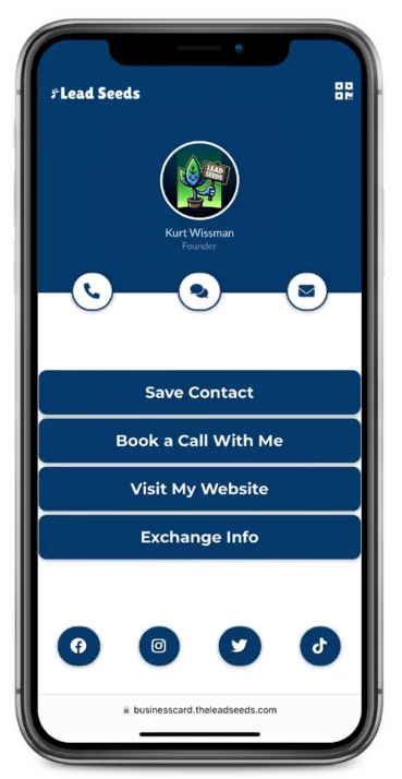 Lead Seeds allows you to create and share digital business cards, eliminating the need for physical cards. Quicklu exchange contact information with potential clients and partners via text, email, social media, or QR code.